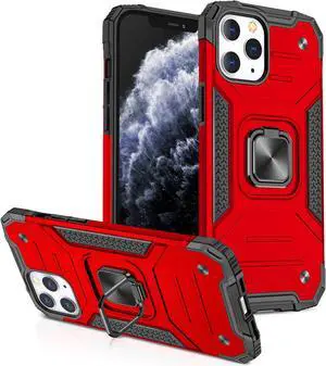 Robust Series Dual Layer Hybrid Case with Ring Stent Finger Loop for iPhone 12 / iPhone 12 Pro - Red