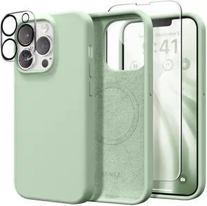 Magnetic for iPhone 13 Pro Max Case, Compatible with MagSafe, [Screen Protector + Camera Lens Protector], Silicone Shockproof Anti-Scratch Protective Phone Case 6.7 inch, Pastel Green