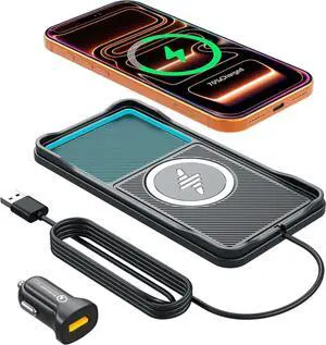 Wireless Car Charger Car Wireless Chargers Charging pad Non Slip 15w Fast Charger for Car Wireless Phone Charger for iPhone 16/15/14/13/12 Pro Max for Android (Black-100cm Cable)