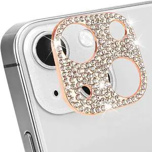 Sparkling Rhinestone Adhesive Rear Camera Lens Protector for iPhone 14 / iPhone 14 Plus - Rose Gold
