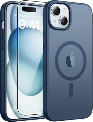 for iPhone 15 Case: for iPhone 14 & iPhone 13 Case [with Screen Protector] Magnetic Translucent Matte | Military Grade Drop Protection | Shockproof Phone Cover Protective Cases - Blue