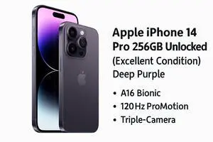 Apple iPhone 14 Pro 256GB Unlocked Excellent Condition Deep Purple A16 Bionic, 120Hz ProMotion, Triple Camera