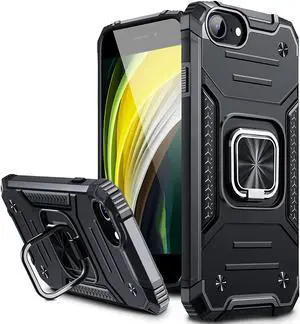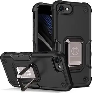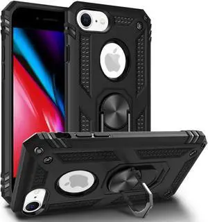 Military Grade Shockproof Hybrid Armor Case with Ring Holder for iPhone SE (3rd gen & 2nd gen) and iPhone 8/7 - Black