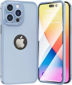 360 Full Protection Aluminum Bumper Cover with Integrated Tempered Glass Screen Protector for iPhone 14 - Blue