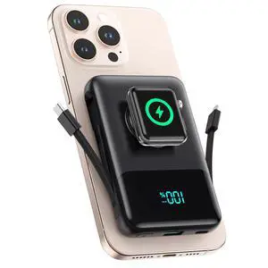 Features: 6-in-1 Magnetic Portable Charger,2 Inputs, 2 x Magnetic Wireless + 4 x Wired Charging,25W+QC4.0 Fast Charging Battery Pack Double-sided Wireless Magnetic Portable Charger for iPhone/iWatch/Airpods, Wireless Power Bank with Apple Watch Charger, 25W PD Fast Charging Mag-Safe Battery Pack with 6 Outputs and LCD Display, Fast Charging Wireless Phone Charger,Lightweight Travel Charger ?