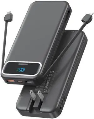 20000mAh Portable Charger with Built in Cables 22.5W Travel Power Bank Fast Charging USB C Cell Phone Battery Pack for iPhone 16/15/14/13/12/11 Series iPad Android Tablet