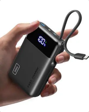 Power Bank Fast Charging Small 22.5W 10000mAh USBC Portable Charger with Built-in USB-C Cable Mini Battery Pack Essentials 2 USB C and 1 A for iPhone 17/16/15 Series Google Android