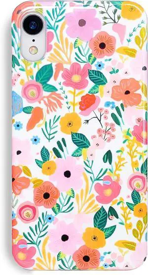 J.west iPhone XR Case 6.1, Soft Shockproof Cute Floral Phone Protective Cover for Women, Garden Flower Pattern Design Slim Fit Anti-Scratch Phone Case for Girl
