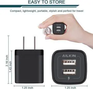 Slim Flat USB Wall Charger Ultra Thin 3 Port Wall Plug with Smart IC USB Charger Block for iPhone iPad iPod Android Galaxy and More