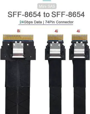 Aomoproing LP Low Profile SFF-8654 8i 74Pin to Dual SFF-8639 U.2+15Pin Cable \u2013 32AWG High-Speed Server Interconnect (0.8M)