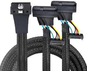 Aomoproing SFF-8611 8X to Dual SFF-8639 U.2 Cable with 15-Pin SATA Power, 32AWG Copper High-Speed Harness, 12Gbps Data Transfer (1m/39.37in)