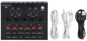 V8 Sound Card, Audio Audio Sound Card, Adapter Live Broadcast Ktv Sound Card for Double Cell Phone for Live Ktv Voice Chat, External Sound Card for Phone Computer(Color:Black), 22358870