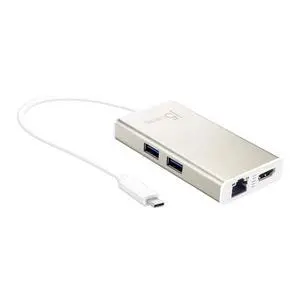 j5create USB C Hub Multi-Adapter Docking Station with HDMI 4K, 2X USB 3.1 SuperSpeed Ports, Ethernet, Power Delivery 2.0 (JCA374)