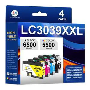 MANNERES LC3039XXL Ink Cartridge Ultra High-Yield 4-Pack LC3039 LC3039-XXL Ink Replacement for Brother LC3037 MFC-J5845DW MFC-J5845DW XL MFC-J5945DW MFC-J6545DW MFC-J6545DW XL MFC-J6945DW Printer