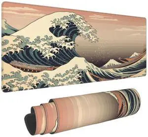 Japanese Blue Wave Gaming Mouse Pad XL, Large Non Slip Rubber Mousepad, Stitched Edges Mouse Pads, Long Extended Mouse Pad,31.5'' X 11.8''