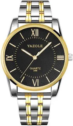 YAZOLE 348 Men Fashion Business Steel Strap Band Quartz Wrist Watch, Luminous Points (Black)