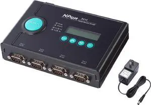 Moxa NPort 5410 with Adapter - 4 Port Device Server, US Plug, 10/100M Ethernet, RS-232, DB9 Male, 12-48VDC, 0 to 55°C