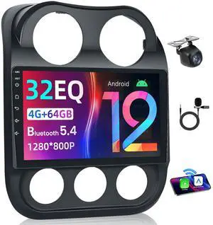 [4+64G] Car Radio Stereo for Jeep Patriot Compass 2010-2016: 10" 5GWiFi Bluetooth 5.4 1280 * 800 IPS HD Touch Screen Replacement with Wireless CarPlay Android Auto GPS SWC Backup Camera