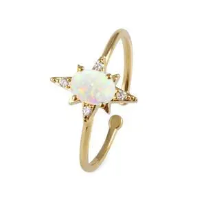 18K Yellow Gold Plated Opal Cubic Ring, White Opal Ring, Adjustable Size, Stacking Ring, Spark opal ring