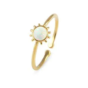 18K Yellow Gold Plated Sun Opal Ring, White Opal Ring, Adjustable Size, Stacking Ring