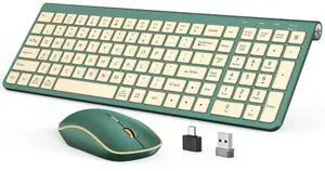 JOYACCESS Wireless Keyboard and Mouse Combo,2.4G Ergonomic Typewriter Keyboard with Type-C Receiver and Adjustable Tilt for Computer, Windows,Desktop, PC, Laptop-Cangling Green