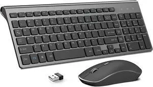 JOYACCESS Wireless Keyboard Mouse Combo, 2.4G Compact and Ultra Slim Wireless Keyboard and Mouse for Windows, Computer, Desktop, PC, Laptop (Grey)