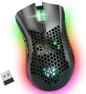 KM-1 Gaming Mouse, Wireless Mouse Gaming Computer Mice USB with Honeycomb Shell, 6 Programmed Buttons, 3 Adjustable DPI, Ergonomic RGB Optical Mouse for PC Mac Laptop