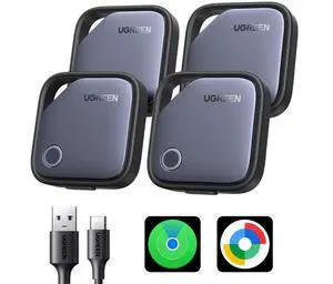 Finder Duo (iOS and Android) Air Tracker Tags 4 Pack, Rechargeable Bluetooth Tracker Key Finder Compatible with iOS and Android for Keys, Luggage and More | 12-Month Battery