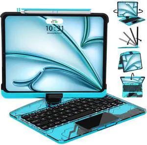 LENRICH iPad pro 12.9 case with Keyboard 2017 2nd 2015 1st Generation, 360 Rotatable Wireless Folio 180 Swivel Stand Hard Cover Auto Sleep Wake up