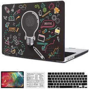 Compatible with MacBook Pro 16 inch Case 2021-2026 Release M5 A3428 A3429 M4 A3403 A3186 M3 A2991 M2 A2780 M1 A2485 Pro/Max Hard Shell & Mac OS Keyboard Sticker&Keyboard Cover (Black Bulb)