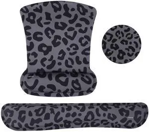 Wrist Rest Support for Mouse Pad&Keyboard Set, Leopard Grain Ergonomic Mousepad&Coaster Non-Slip Base Home/Office Pain Relief&Easy Typing Cushion with Neoprene Cloth&Raised Memory Foam, Black