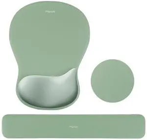 Wrist Rest Support for Mouse Pad&Keyboard Set, Ergonomic Mousepad&Coaster, Non-Slip Base Home/Office Rectangular Easy Typing Cushion Pad with Soft Cloth&Curved Concave Memory Foam, Green