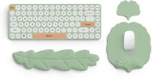 Keyboard Wrist Rest and Mouse Pad with Wrist Support Set, Ergonomic Leaf Shape Mouse Pad with Non-Slip Base, Pain Relief Memory Foam Mousepad for Computer,Laptop,Home Office, Green