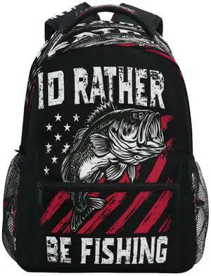 Dussdil Bass Fish Kids Backpack American Flag Backpacks for Boys Casual Daypack Back Pack 16 inch Laptop Bag Double Zipper Travel Sports Bags with Adjustable Shoulder Strap