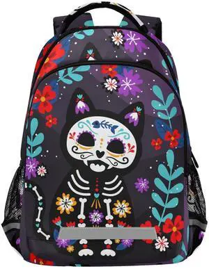 Glaphy Cat Sugar Skull Backpacks Laptop School Book Bag Lightweight Daypack for Men Women Teens Kids