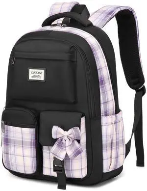 VANKANY Girls Backpack Teen Girls Bookbag, Big Student School Backpack for Middle High School College Women Cute Schoolbag for Kids Teenage Back Pack (Black Purple)