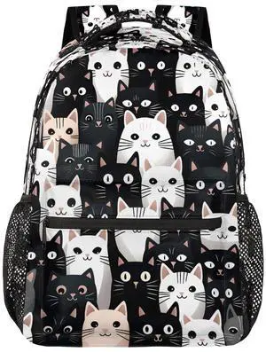 DJYQBFA Black White Cat Backpack for Women Men Kids 16 Inch Laptop Backpack Lightweight Travel Backpack Purse Casual Daypack School Backpacks for Girls Boys