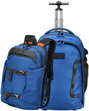 2-in-1 Detachable Rolling Backpack,56L Large Travel Backpack with Wheels-Splits into Daypack & Laptop Backpack Fits 17 Inch Laptop,Water-Resistant & Carry-On Friendly for College, Work & Travel Blue