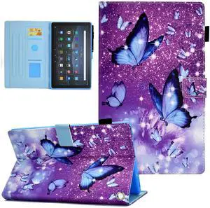 Case for Kindle Fire HD 8 and Fire HD 8 Plus Tablet Case (12th/10th Generation 2024/2022/2020 Release), Funut PU Leather Slim Smart Cover Tablet Case with Auto Wake/Sleep, Purple Butterfly