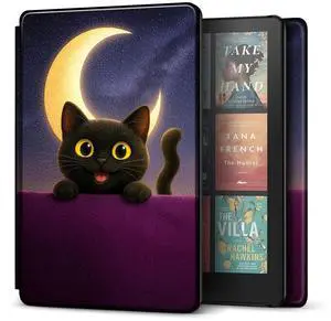 TNP Case for Kindle Paperwhite 12th Generation 2024 / Kindle Colorsoft Signature Edition - 7" PU Leather Protective Folio Cover for Kindle Paperwhite Kids with Auto Sleep/Wake, Cat Moon