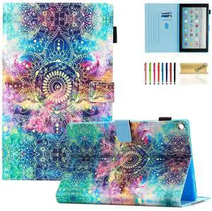 Dteck Case for All-New Fire HD 10 Tablet 10.1 Inch (9th/7th/5th Generation, 2019/2017/2015 Release) - Slim Premium PU Leather Folio Stand Magnetic Cover with Auto Wake/Sleep, Galaxy Flower