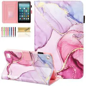 Dteck for Kindle Fire 7" (9th/7th/5th Generation 2019/2017/2015 Release) Smart Folio Case with Auto Sleep Wake/Stand Function, PU Leather Protective Lightweight Cute Slim Cover, Pink Marble