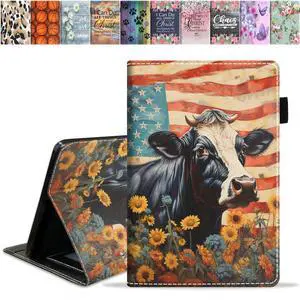 DEHJYYIJUY Case for Fire HD 10 & 10 Plus Tablet 10.1" (13th/11th Generation, 2023/2021 Release) - Slim PU Leather Folio Smart Cover with Auto Wake/Sleep, American Flag Cow and Sunflower