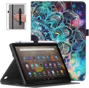 VORI Case for All-New Fire HD 10 Tablet (11th Generation 2021 Release) and Fire HD 10 Plus, Folding Stand TPU Cover with Auto Wake/Sleep & Hand Strap for Fire 10.1 Inch 2021, Mandala Galaxy