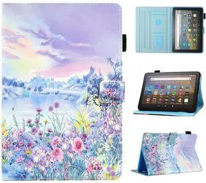 MonsDirect for Kindle Fire HD 8 & 8 Plus Case (12th/10th Generation 2024/2022/2020), PU Leather Stand Cover, Auto Wake/Sleep with Pen Holder for Fire HD 8/8 Plus 2024/2022/2020, Purple Scenery