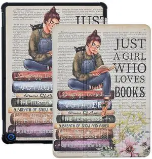 Case for Fire HD 10 Tablet (13th Generation, 2023 Release), Book Lovers Gifts Lightweight Multi-Angle Stand Cover with Auto Wake/Sleep, Just A Girl Who Loves Books