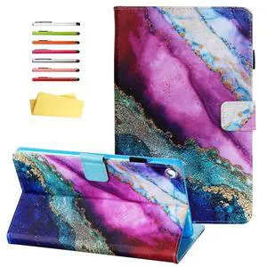 UUcovers Fire HD 8 Tablet Case 8th/7th/6th Generation 8.0 inch with Stand Pencil Holder [Auto Wake/Sleep] Card Slots PU Leather Folio Smart Cover for kindle Fire HD 8 (2018/2017/2016), Rainbow Marble