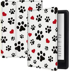 Cute Dog Paw Prints Case for All-New Kindle Fire HD 8 and Fire HD 8 Plus Tablet (2024/2022/2020 Released 14th/12th/10th Gen), PU Leather Folding Stand Slim Case with Auto Sleep/Wake