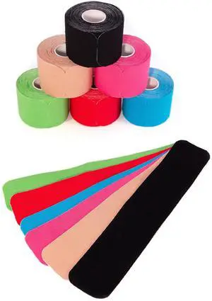 Kinesiology Tape PRECUT Mix Set | 120 Pre-Cut Multicolored Sport Tape Strips 10 x 2 in - on 6 Rolls | Waterproof Skin-Friendly Elastic | Kinesiology Tapes Ideal for Sports