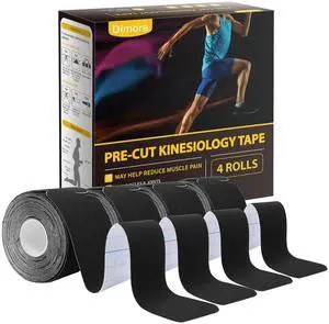 Kinesiology Tape, 80 Count Precut Strips 4 Rolls, Original Cotton, 10 Elastic Athletic Tape for Muscle Pain Relief and Joint Support, Black